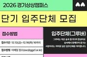 뉴스온경기 | 경기문화재단 경기상상캠퍼스는 문화예술 기반 실험적이고 창의적인 2026 단기 입주단체를 오는 12월16일까지 모집한다. 2026 단기 입주 모집은 다양한 분야의 문화기획자, 예술가, 청년 활동가, 창업·창직 단체 등이 약 5개월간 경기상상캠퍼스에 입주해 새로운 실험과 협업을 펼칠 수 있는 경험 제공을 위해 마련된 프로그램이다. 경기상상캠퍼스는 이번 모집을 통해 공실을 최소화하는 동시에, 공간 특성에 적합한 역량 있는 단체들을 선제적으로 발굴하여 문화 기반 창업·창직 및 청년 활동의 실험실 역할을 강화할 계획이다. 또한 단기 입주 경험을 제공함으로써 정기 입주로 이어질 수 있는 사전 역량 검증과 활동 기반 마련의 기회를 확장하고, 입주단체 간 교류·협업으로 캠퍼스 전반의 활성화를 도모 할 계획이다. 모집 공간은 생활1980, 청년1981, 디자인1978, 공작1967 등 4개 동이며, 총 15개 단체를 선발한다. 각 공간의 기능에 맞춰 공방, 문화기획·교육, 다장르·융복합, 디자인, 제작 기반 창작 활동 등 다양한 분야의 역량 있는 단체를 모집한다. 입주 기간은 2026년 3월 1일부터 7월 26일까지 약 5개