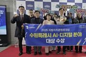 뉴스온경기 | 수원특례시는 ‘2025 지방자치콘텐츠대상’에서 인공지능(AI)·디지털 분야 대상을 받았다. 27일 국회의원회관 대회의실에서 열린 이번 시상식은 지방자치TV, 한국지방자치학회, 한국지방행정연구원, 인문콘텐츠학회가 공동으로 주관했다. 수원시는 전국 지자체 최초로 국 단위 AI 전담조직을 신설해 체계적 정책 기반을 구축했다. 빅데이터 플랫폼, 모바일 전자고지 통합시스템, AI 도로분석 시스템 등을 추진했다. 또 수원형 AI무역청을 마련해 지역 중소기업의 수출 경쟁력을 높였다. 시민 체감형 AI서비스도 확대했다. 인파 밀집 안전사고 예방 감지 AI카메라, 어린이 보행 중 스마트폰 사용 제한 스쿨존, 생성형 AI 기반 고립위기 청소년 사전예방 시스템, AI복지상담 서비스 등을 구축해 생활밀착형 디지털 전환을 이끌었다. 수원시는 공무원과 시민 대상 AI 역량 교육을 강화해 행정과 시민이 함께 성장하는 AI혁신도시 모델을 실현하고 있다. 시상식에 참석한 현근택 수원시 제2부시장은 “국 단위 AI 전담조직을 바탕으로 행정 혁신과 시민 체감 서비스를 확대한 점이 좋은 평가를 받았다”며 “AI 기반 지