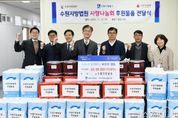 뉴스온경기 | 지난 27일 수원지방법원은 수원시 영통구에 연말지역사회 나눔의 일환으로 직접 담근 김치, 라면, 화장지 각 30박스 등 총 90박스의 물품을 기부했다. 전달식에는 수원지방법원와 영통구 관계자들이 참석해 따뜻한 온정을 나누는 시간을 가졌다. 2021년부터 영통구에 정기후원을 하는 수원지방법원 봉사단체‘사랑나눔회’는 직접 김치를 담그고 후원물품을 더하여 관내 수급자, 취약계층에게 지원하며 이웃에 대한 사랑과 나눔을 실천하고 '국민에게 가까이 있는 법원상'구현에 힘쓰고 있다. 이번 후원물품은 지역 내 취약계층 30여 가구에 배분될 예정이다. 김세윤 수원지방법원장은 “작은 정성이지만 지역 주민들에게 도움이 되길 바란다. 앞으로도 지역사회외 함께하는 따뜻한 법원이 되겠다”고 말했다. 장수석 영통구청장은 “수원지방법원의 꾸준한 나눔 실천에 진심으로 감사드린다. 기탁된 물품을 도움이 필요한 가정에 소중히 전달하겠다”고 감사 인사를 전했다.