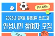 뉴스온경기 | 안성시는 시민 누구나 일상에서 부담 없이 운동을 즐길 수 있도록 ‘2026 종목별 생활체육 프로그램’을 운영하고, 4월부터 참가자를 모집 중이라고 밝혔다. 이번 프로그램은 오는 7월까지 안성시 관내 종목별 체육시설에서 진행된다. 육상, 수영, 배드민턴 등 총 30개 종목이 마련되어 있어 시민들은 자신의 관심사와 체력 수준에 맞는 운동을 자유롭게 선택할 수 있다. 특히 참가비가 전액 무료로 운영되어 경제적 부담 없이 참여할 수 있는 점이 큰 장점이다. 운동을 처음 시작하는 입문자도 쉽게 적응할 수 있도록 기초 실무 위주로 구성됐으며, 다만 일부 종목에 한해 장비 대여 등 최소한의 자부담 비용이 발생할 수 있다. 참여 대상은 운동에 관심 있는 안성시민 누구나 연령과 경험에 관계없이 신청 가능하다. 모집은 종목별 정원에 따라 선착순으로 진행되며, 종목별 담당자에게 직접 문의하거나 안성시체육회 안내를 통해 신청하면 된다. 안성시 관계자는 “생활체육은 건강한 삶을 유지하기 위한 가장 쉽고 확실한 방법”이라며, “이번 프로그램을 통해 많은 시민이 일상 속에서 운동의 즐거움을 찾고 삶의 활력을 얻