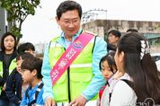 뉴스온경기 | 이상일 용인특례시장은 14일 아침 처인구 고림로에 위치한 고진초등학교 정문 횡단보도에서 어린이들의 안전한 통학환경 조성을 위한 교통지도 봉사활동에 참여하고 학교 주변 통학로를 점검했다. 이상일 시장은 서경란 고진초 교장, 녹색어머니회·학부모회·학생 등 60여명과 함께 등굣길 어린이들이 안전하게 길을 건널 수 있도록 돕고 운전자들에게 ‘어린이보호구역 내 서행’을 당부하는 교통안전 캠페인을 펼쳤다. 이 시장은 통학로 현장을 둘러보며 ▲고림고 유리방음벽 모서리 보호대 설치 ▲고림고~힐스테이트용인고진역 구간 횡단보도 너비 확대 ▲해당 구간 도로의 물고임 등 도로시설물 일제정비 ▲통학로 낙엽제거(보행자 미끄러짐 방지) 등의 추가 건의사항을 꼼꼼히 챙겼다. 이상일 시장은 녹색어머니회와 학부모회 회원들에게 “아이들의 등굣길을 지켜주셔서 감사 드린다”며 “학생들이 마음 놓고 통학할 수 있는 안전한 도시 환경을 만드는 것이 무엇보다 중요한 만큼 시에서도 현장을 잘 살펴 필요한 조치를 신속히 진행하겠다”고 말했다. 이 시장은 10월과 11월에도 용인신촌초, 백현초, 구갈초, 신월초, 함박초, 교동초,
