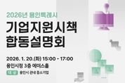 뉴스온경기 | 용인특례시는 오는 20일 오후 3시 시청 에이스홀에서 ‘2026년 중소기업 지원시책 합동설명회’를 개최한다고 9일 밝혔다. 이번 설명회는 자금‧수출‧연구개발 등 다양한 중소기업 지원 정책 정보를 안내하고, 기업들이 이를 효율적으로 이용할 수 있도록 하고자 마련됐다. 시는 용인시산업진흥원과 금융지원, 기업환경 개선, 해외판로 개척, 기술지원 등 올해 지원사업 내용을 설명한다. 중소벤처기업진흥공단, 기술보증기금, 경기신용보증재단, 소상공인시장진흥공단 등 4개 기관은 기업 운용에 도움이 되는 자금과 금융 지원책을 소개한다. 경기도경제과학진흥원, 경기테크노파크, 경기지방중소벤처기업청 등 3개 기관은 해외시장 판로 개척, 연구개발(R&D) 지원사업 등을 설명한다. 설명회 후엔 이들 기관과 별도 부스에서 기업인과 맞춤형 상담도 할 예정이다. 참여를 원하면 오는 20일까지 시 홈페이지나 용인기업지원시스템을 통해 신청하면 된다. 당일 현장 신청도 가능하다. 자세한 사항은 용인기업지원시스템 용인시소식을 참고하거나 용인시 기업지원과로 문의하면 된다. 이상일 시장은