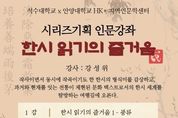 뉴스온경기 | 안양시 석수도서관은 안양대학교 HK+사업단 지역인문학센터와 함께 시리즈기획 인문강좌의 일환인‘한시 읽기의 즐거움’ 강좌를 오는 11월 7일부터 12월 5일까지 운영한다고 17일 밝혔다. 이번 강좌를 통해 수강생들은 작사(作詞)와 작곡(作曲)의 특징을 동시에 지닌 한시(漢詩)의 형식미를 감상하고, 과거와 현재를 잇는 전통이 체현된 문화 텍스트로서의 한시 세계를 탐방한다. 석수도서관 관계자는 “석수도서관과 안양대학교 지역인문학센터가 협업하여 진행하는 이번 시리즈기획 인문강좌를 통해 시민들이 한시의 매력적인 세계를 깊이 탐구하고, 한시를 읽는 즐거움을 알 수 있길 바란다”고 밝혔다. 서울대학교 중국어문화연구소 책임연구원이자 한시 칼럼니스트 강성위가 진행하는 이번 강의는 10월 21일 10시부터 안양시도서관 홈페이지에서 접수하면 된다.