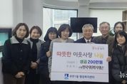 뉴스온경기 | 수원중앙침례교회는 지난 23일, 관내 취약계층을 위해 불우이웃돕기 100만원 성금을 세류2동 행정복지센터에 후원했다. 이날 기탁된 성금은 경기사회복지공동모금회를 통해 지역의 어려운 이웃을 위해 사용될 예정이다. 고명진 수원중앙침례교회 담임목사는 “추수감사절 즈음하여 지역사회 사랑나눔을 통해 이웃들이 따뜻한 겨울을 보내는 데에 도움이 되길 바란다”라고 전했다. 변영호 동장은 “지역사회에 따뜻한 관심과 사랑을 실천해 주신 수원중앙침례교회에 감사드리며, 앞으로도 유관 기관과의 협력을 통해 행복과 웃음이 피어나는 정겨운 세류2동을 만들기 위해 노력하겠다”라고 말했다.