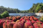 뉴스온경기 | 주변 섬들의 이름과 지명을 알 수 있는 전경 안내판이 설치된 전망대에 올라서면 시원한 가을 바닷바람을 맞으며 서해안을 볼 수 있고, 다양한 가을꽃이 만개한 곳! 바로 경기도 안산 대부도 인근에 소재한 바다향기수목원이다. 추석연휴 기간을 맞아 자연의 싱그러운 녹음을 전해주고 있는 바다향기수목원에는 수목원 내 식재된 다양한 가을꽃과 함께 890개 국화 화분이 일제히 개화를 하고, 목화 1,200본과 붉게 단풍이 든 댑싸리 500개, 다양한 색상의 웨이브페츄니아와 로즈마리 1,100본이 가을의 색과 향기를 전하고 있다. 또한 ‘바다향기수목원 사용설명서’, ‘자연 속 숨은 보물찾기’, ‘속속들이 소나무’, ‘흙은 재미있는 우리 친구’ 등 다양한 숲 해설 프로그램이 가을철 수목원을 찾는 가족 단위 방문객들을 맞이하고 있으며, 연중 토요일과 일요일에 신청을 받아 운영되고 있는 ‘향나무 목걸이 만들기’, ‘불어라 피리’ 등의 체험프로그램 또한 관람객을 위해 준비되고 있다. 더욱이 수목원 내 염생식물원에 있는 ‘바다향기전시관’을 지역사회와 예술가를 위한 기획전시실로 개방해 10월 3일부터 12일까지 기획전시 및