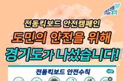 뉴스온경기 | 경기도는 11월 한 달간 경기도의회, 경기도교육청, 경기 남ㆍ북부경찰청, 경기도교통연수원, 한국도로교통공단, 시군 등 유관기관과 함께 전동킥보드 안전문화 합동캠페인을 추진한다. 도는 전동킥보드 주요 사고 다발지역 및 유동인구 밀집 지역을 중심으로 유관기관 및 시민단체와 연계해 전동킥보드 필수 안전수칙이 담긴 홍보물을 배부하고 경찰과 협력해 현장 계도 활동도 병행한다. 시군별 전광판, 현수막 등 지역 홍보 매체를 적극 활용해 전동킥보드 안전수칙 홍보도 적극 확대할 계획이다. 특히 전동킥보드 사고 발생의 주요 원인인 면허 자격, 이용 연령, 안전모 착용, 동승 금지 의무 등을 집중적으로 안내하고, 교육청과 협력해 청소년 대상 교육도 강화할 방침이다. 윤태완 경기도 광역교통정책과장은 “이번 안전캠페인은 전동킥보드 안전이용 문화가 안착되는 계기가 될 것”이라며 “도에서는 캠페인 기간이 끝나더라도, 경찰청·교육청 등 유관기관과 지속 협력해 전동킥보드 안전사고 예방에 총력을 다할 계획이다”고 말했다. 현재 경기도 내 운영 중인 공유 전동킥보드는 6만 7,866대로 31개 시군 전역에