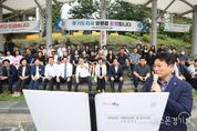 뉴스온경기 | 민생경제 현장투어차 안양시를 방문 중이던 김동연 경기도지사가 건설현장 외벽 붕괴사고 발생 소식을 듣고 급히 현장에 출동해 사고수습 상황을 점검하고 안전조치를 지시했다. 김동연 지사는 16일 오후 사고가 발생한 안양시 만안구 안양동 건설현장을 찾아 현황을 살핀 후 신속한 복구와 재발 방지 노력 등을 당부했다. 김 지사는 이날 현장에서 “일단 복구가 우선이니까 작업을 중지하고 오늘 자정까지 복구를 진행하고, 추가 피해가 없도록 재발 방지를 신경쓰도록 하라”고 말했다. 이어 “원인규명을 해서 책임 소재를 분명히 가리도록 하라”고 당부했다. 김 지사는 또 소방본부, 경찰서, 안양시, 도가 함께 철저한 대책을 만들도록 지시했다. 이날 사고는 오후 2시경 돌풍에 의해 빌딩 외벽에 설치된 비계가 붕괴되면서 발생한 것으로 알려졌다. 인명이나 재산피해는 없었다. 경기도는 현장에서 작업 중이던 40명 정도의 노동자를 대피시키는 한편 이날 자정까지 비계를 완전 철거하고 다시 설치하도록 했다. 민생경제 현장투어의 하나로 안양시를 방문한 김 지사는 이날 오전 안양 인덕원 환승주차장에