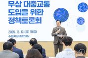 뉴스온경기 | 수원특례시는 12일 시청 중회의실에서 ‘수원시 무상대중교통 도입 정책토론회’를 열고, ‘수원형 무상대중교통’ 도입 정책 방향을 공유했다. 이날 정책토론회는 주제 발표와 종합토론으로 진행됐다. 김채만 경기연구원 선임연구위원이 ‘미래 대중교통 정책방향-쿠리치바 대중교통 사례’, 김숙희 수원시정연구원 선임연구위원이 ‘수원시 무상대중교통 도입 방향’을 주제로 발표했다. 수원시는 사회초년생 청년과 어르신의 교통비 부담을 덜어주기 위해 내년 1월 1일부터 무상대중교통 지원사업을 시작한다. 지원 대상은 19~23세 청년, 70세 이상 어르신이다(신청일 기준). 19~23세 청년이 K-패스 교통카드로 대중교통을 이용하면 한 달에 최대 2만 3100원(연 27만 7200원)을 환급한다. 어르신은 농협에서 우대 교통카드(G-PASS)를 발급받아 사용하면 실제 사용 금액에 대해 분기별 최대 6만 9300원(연 27만 7200원 한도)를 지원한다. 종합토론에는 아주대학교 오영태 교수, 한국교통연구원 박준식 본부장, 경기대학교 김정화 교수, 경기도 광역교통정책과 윤태완 과장이 참여했다. &nbs